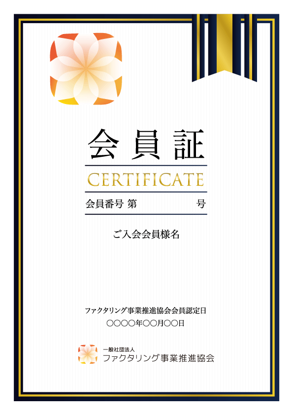 「ファクタリング事業推進協会」では、ファクタリングの適正化の推進と健全な業界の発展を目的として、共に活動するメンバーを広く募集しています。 ファクタリング事業推進協会の参加メンバーは、実務ノウハウや不正業者などの情報共有、見識を深めるためのセミナーへの参加機会を得られます。また、会員には適正な業務を行うファクタリング業者である証として「協会会員証」が進呈されます。 中小企業を守る存在であり、これからの時代のスタンダートとなるファクタリングを共に振興していきましょう。 正会員:月会費1口10万円 特別会員:月会費1口20万円 詳細や申込のご希望の方は事務局までメールでご連絡下さい。
